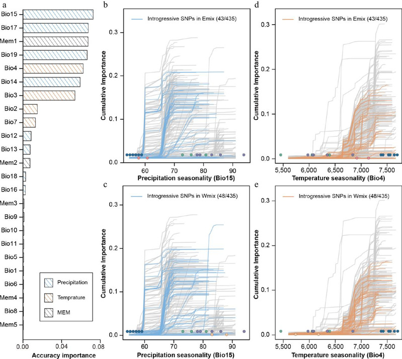 在潜在因素混合模型(LFMM)与冗余分析(RDA)共同鉴定的747个气候相关的基因位点中,有138个通过渐渗引入,暗示适应性变异可随基因流传播。天然发生的基因渐渗虽然能提供部分帮助,但不足以完全抵消气候变化带来的负面影响。研究揭示了基因渐渗在提升局部适应中的潜力,凸显了基因组脆弱性评估在指导孑遗濒危物种保护实践中的重要意义。
