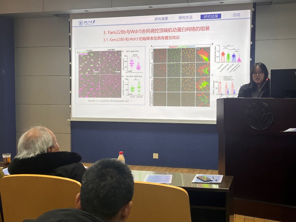 下午的研究生论坛精彩纷呈,四个部分依次由徐良、胡敏杰、邵洋洋、吴梦瑞主持。周德昆、庄恬恬等12名研究生先后登台,汇报了染色体工程、肝脏再生、肿瘤免疫、纤毛发生机制等方向的研究成果。汇报中,学子们思路清晰、论证严谨,充分展现了生命科学学院研究生的科研热情与创新潜力。