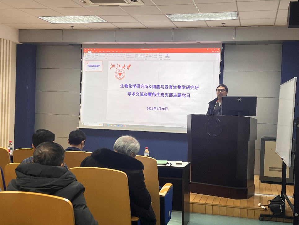 为搭建跨所学术交流平台,凝聚科研合力,推动党建与科研深度融合,助力青年人才成长,2026年1月20日,生命科学学院生物化学研究所与细胞与发育生物学研究所联合举办的学术交流会暨师生党支部主题党日活动在学院245会议室顺利举行。活动设置青年教师/博士后学术论坛、研究生论坛及颁奖仪式等环节,大家齐聚一堂,共话学术前沿,碰撞思想火花。